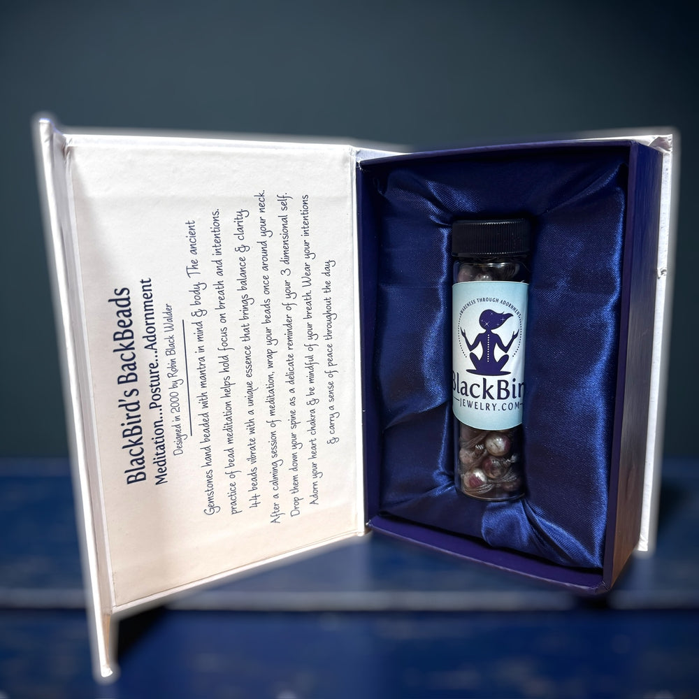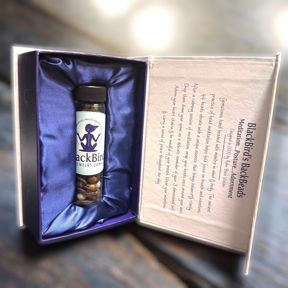 At BlackBird Jewelry, we craft tools for transformation. Since 2000, our signature BackBeads have supported meditation, posture, and self-awareness by gently guiding your spine into alignment.